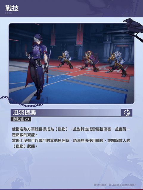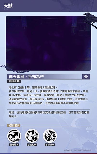 開拓者好呀~今天為大家帶來「貊澤(巡獵‧雷)」的角色預覽!