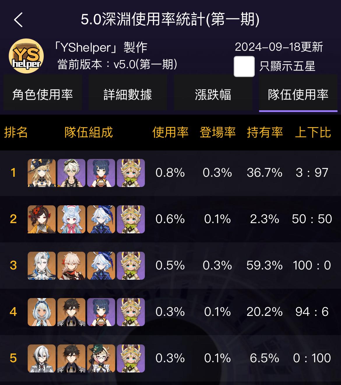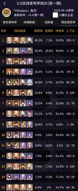 隊伍使用率 https://i.imgur.com/dZ7sLjy.png