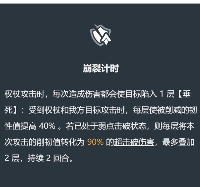 垂死可以疊,每層有90%超擊破+40%削韌 懂這意思嘛?