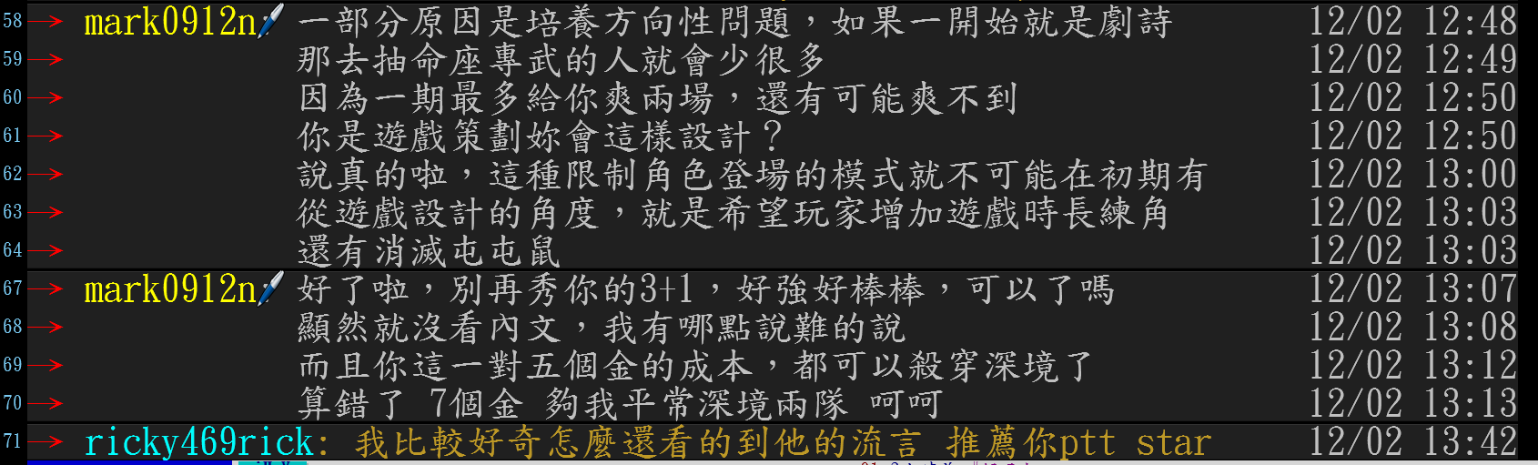 → mark0912n: 因為一期最多給你爽兩場,還有可能爽不到 12/02 12:50