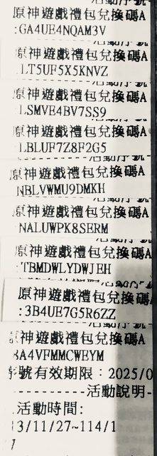標題[原神] 贈全家序號(無翅膀A兌換碼)