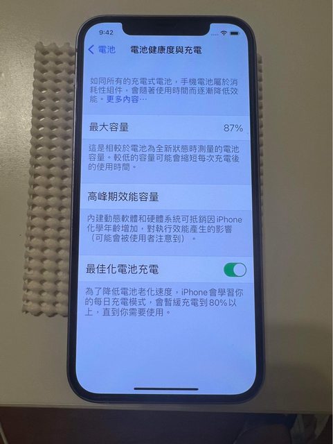 物品狀況:全機原廠件無維修紀錄,電池健康度87%,無泡水摔機,正常使用,含螢幕貼