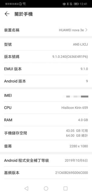 欲售物品:Huawei nova 3e 4G/64G