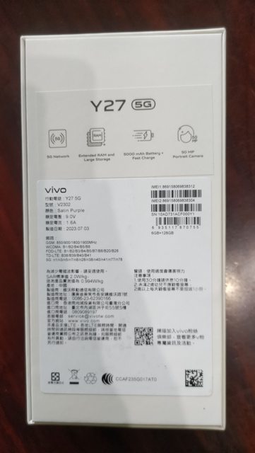 欲售物品:vivo Y27 5G 星晨紫 5G