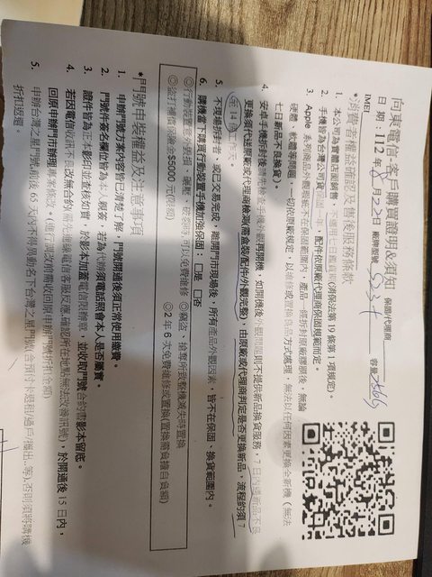 無發票,有購買證明,保固一年