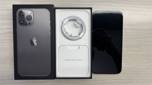 盒裝內含:IPhone 13 Pro Max 256G 石墨灰主機、說明書、原廠充電線(未使用過)、完