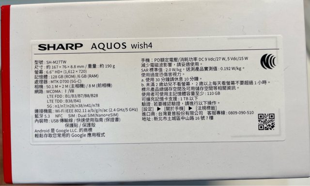 標題[賣/台中/面交] SHARP AQUOS WISH4 128G藍