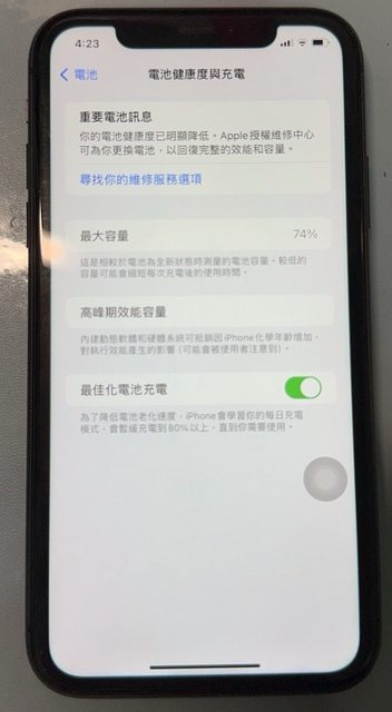 電池健康度74%
