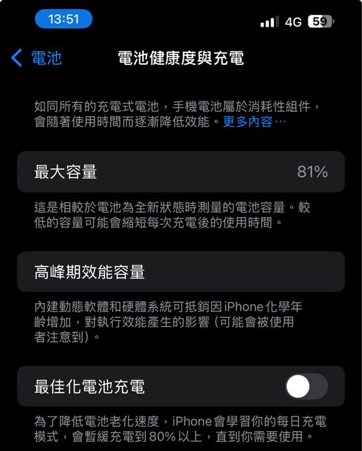 ⑴電池健康度81%,已更新至iOS18.1。