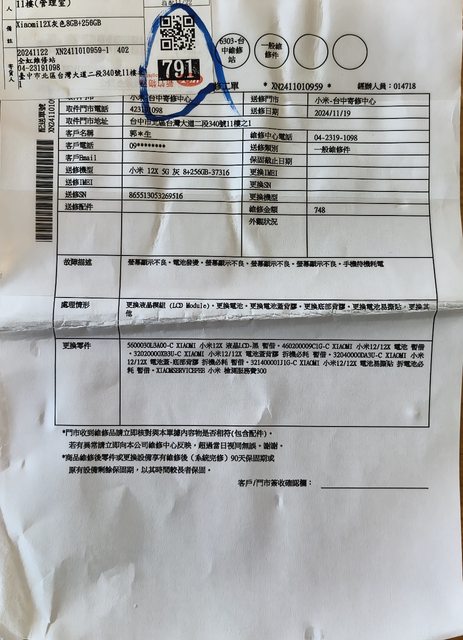 2.已送修更換螢幕及電池。