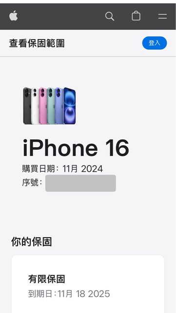 保固日期:蘋果原廠保固至2025-11-18