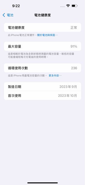 電池健康度91%,循環236,有用手機醫生自行檢測都正常,如需看購買證明可面交時攜帶