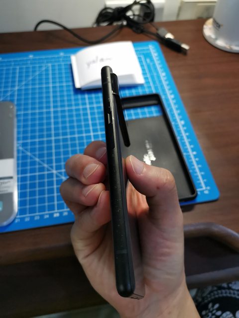 4.手機四周因裝犀牛盾殼有拆卸痕跡如圖,另外鏡頭也有貼保護貼。