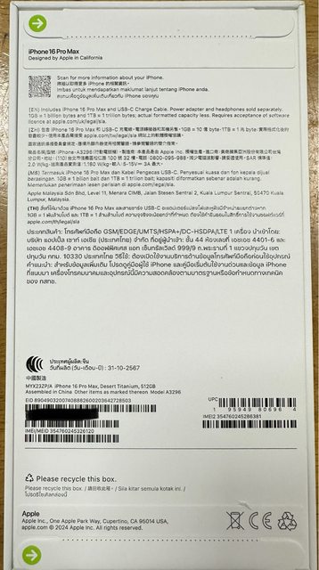 欲售物品:iPhone 16 ProMax 512 沙漠金