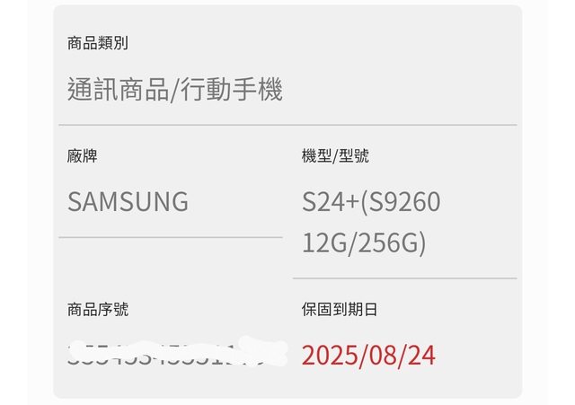 保固日期:2025年8月24日