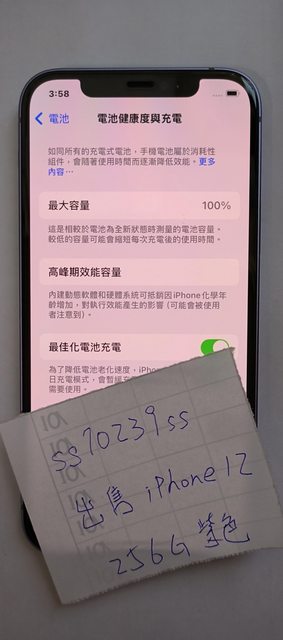 欲售物品:iPhone12 256G 紫色 電量100%