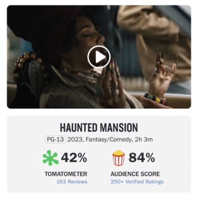 迪士尼《幽靈公館》首映, 爛番茄觀眾評分為 84%。 https://i.imgur.com/GSO9URt.jpg