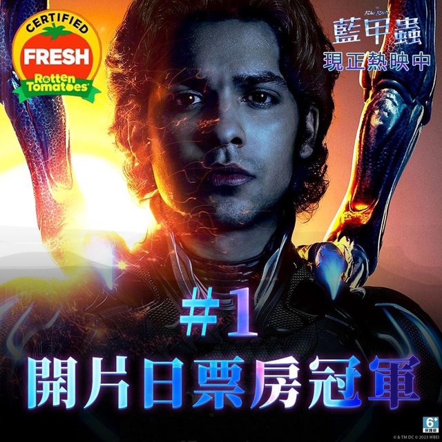 DC最新超級英雄電影《藍甲蟲》,上週末空降北美票房冠軍。(華納兄弟提供)