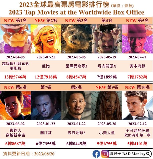 Barbie芭比》持續在全球上映中,全台票房粗估已破台幣