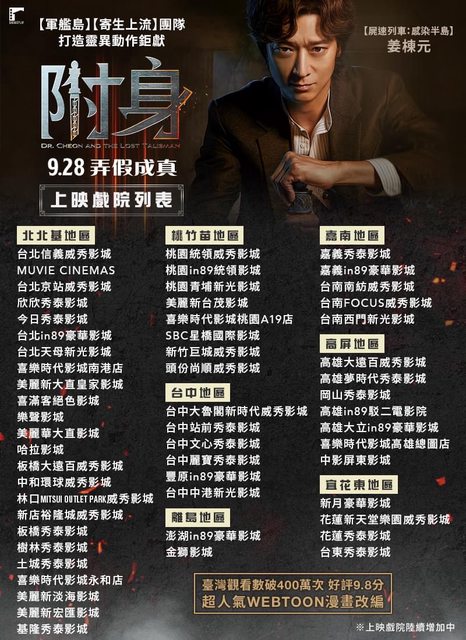 標題[情報] 姜棟元《附身》全台上映戲院列表公開