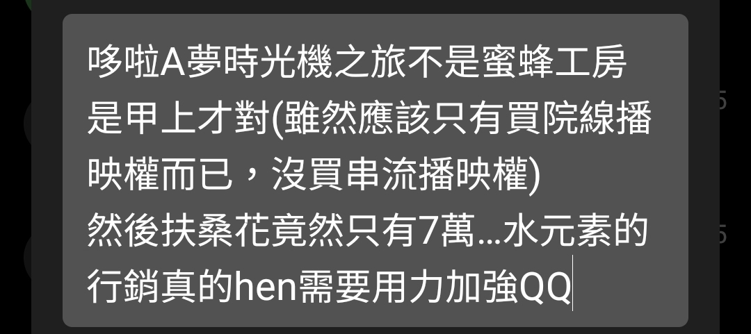 推 hedgehogs : 把人拖進電影院是有好處的,朋友也是動畫電腦看就好 12/09 00:13