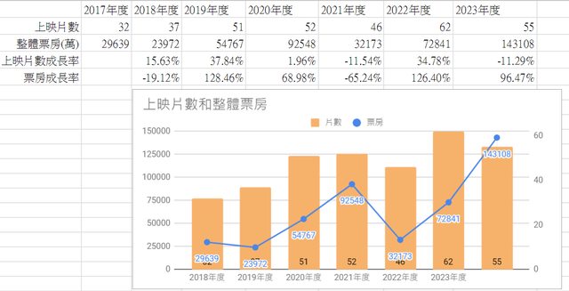 雖然全年上映片數只有55部較去年為低,但今年票房超級大爆發,有著整整4部破億票房