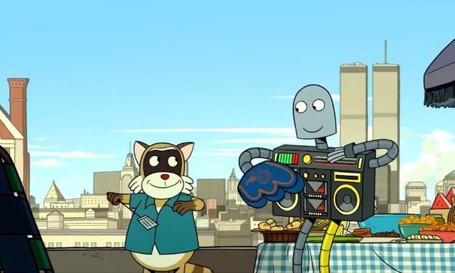 而這時的機器人也被浣熊撿回去,重新修好變成自帶音響的機器人