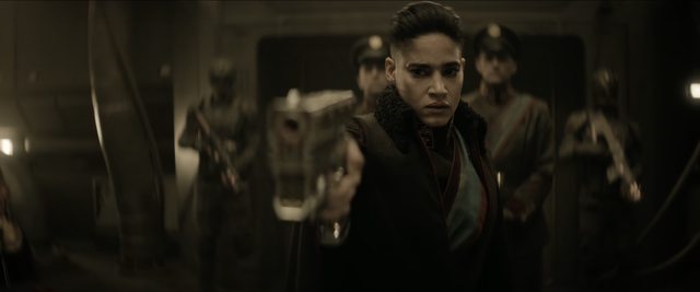 我個人仍不樂見一個「星戰故事」套上《七武士》的農民抗暴,畢竟一個是對抗匪幫一個是對抗戰爭機器、要拍到戰爭機器潰不成軍 (?)怎麼拍都很難說服我;但以此帶出不同星球文化遺民「自罪自咎」重新奮起的英雄故事,好像也不失為銀河帝國眾生景觀的一個有感切入點。回想 2020s全球兩極的對立年代、幾個大國勢力各打大旗虎視眈眈進逼收編?但各個邊緣求存的小國小民往往都在槍口對內自找戰犯,這點看本片農民星球的和戰之辯亦令人有感:有人認為面對帝國只有輸誠、有人認為仍有本錢與帝國交涉、有人熱血沸騰力主不惜一戰、有人則語帶絕望想一走了之...