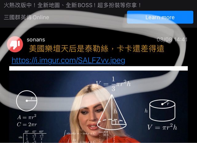 噓 sonans : 美國樂壇天后是泰勒絲,卡卡還差得遠08/08 14:41