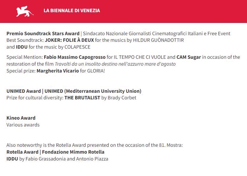 標題[情報] 2024 威尼斯影展 完整得獎名單