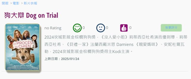 標題[情報] 《狗大辯》(Dog on Trial) 台灣定檔 1/24 上映!
