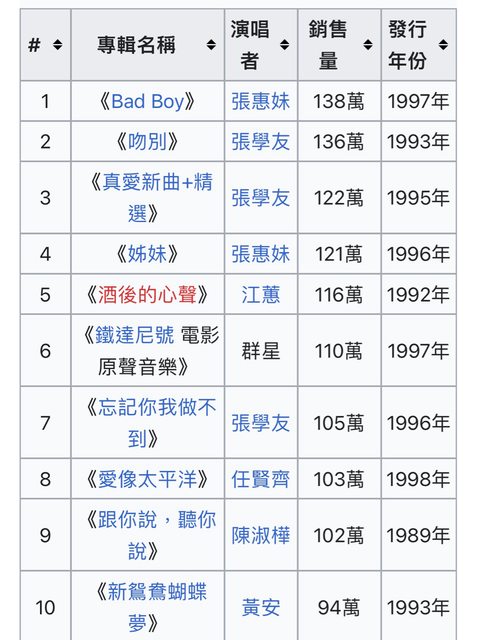 推 tia999 : 維基都可以亂改 ,很多唱片銷售量都灌水…… 10/07 00:31