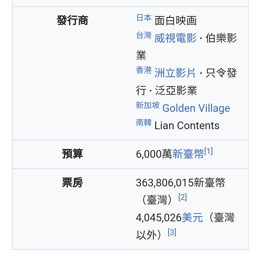 → chyx741021 : 2023年台灣年度票房第三名,國片史上票房第七名, 11/02 21:15
