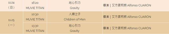 → dioman : 應該是兩堂大師課(業界) 一場映後(地心引力) 11/19 16:07