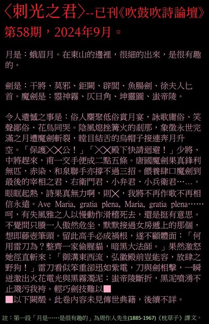 刊《吹鼓吹詩論壇》第58期,2024年9月。