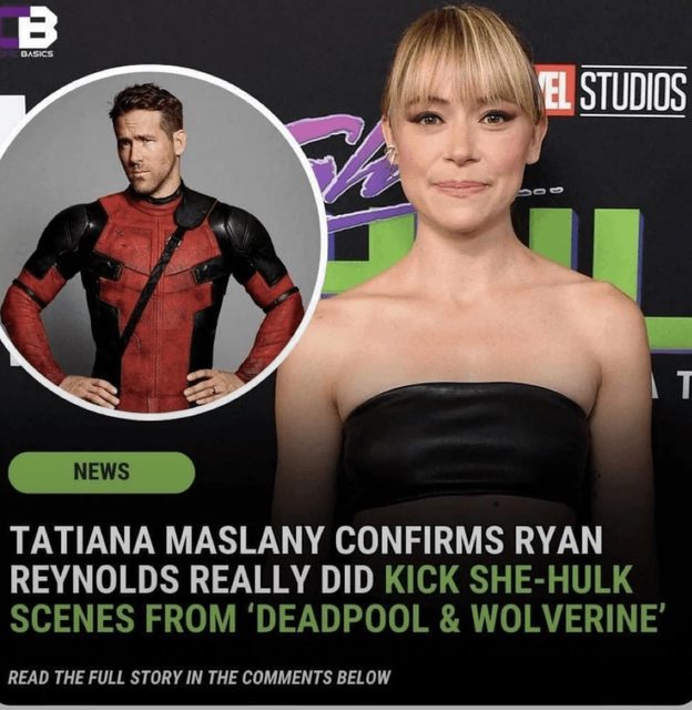 : 女浩克演員Tatiana Maslany說 原本她有拍攝一些畫面在死侍與金剛狼中出現,但 Ryan Re