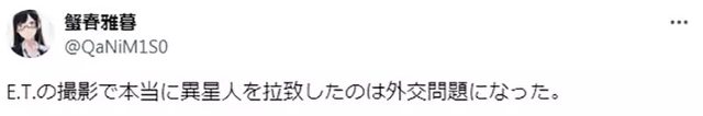 「《E.T.外星人》也真的引發了外星人綁架的外交問題。」