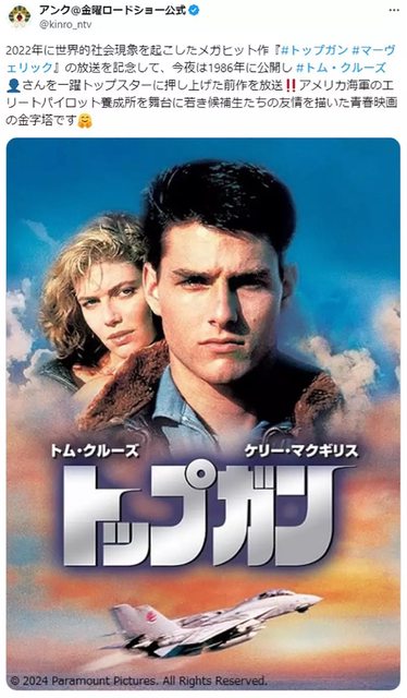 日本電視台最近重播了1986年上映,由湯姆・克魯斯主演的電影《捍衛戰士》。
