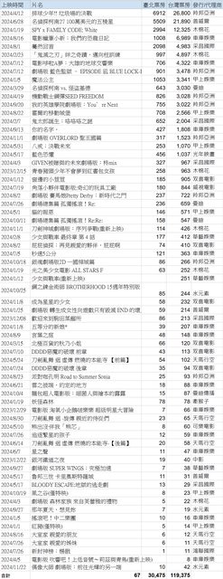 標題[討論] 2024年台灣非歐美動畫電影票房