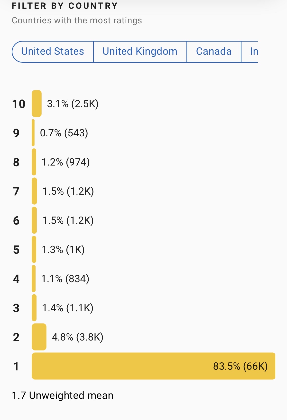 推 darkbrigher : 只剩DEI孝子還在說都是仇恨評分 沒那麼差 03/25 20:34