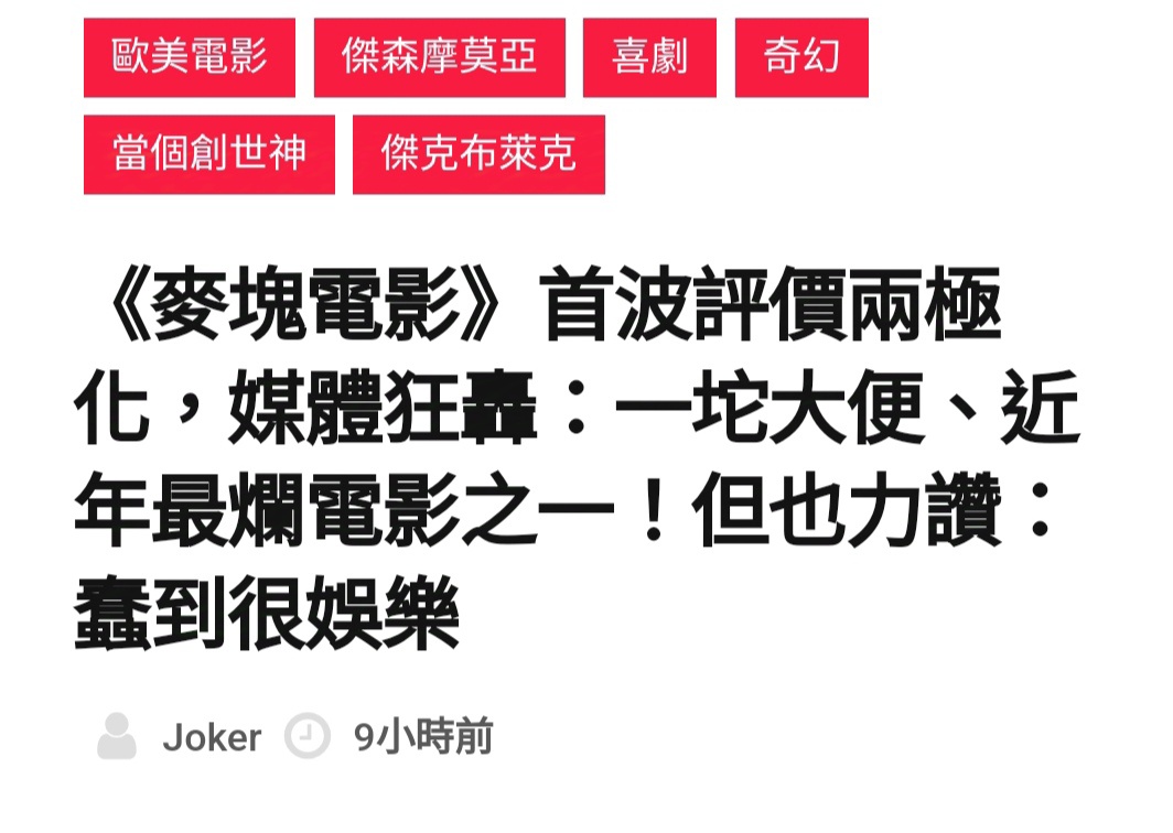 推 Cinedt: 包養平台不意外 03/31 17:54 推 Aesti : 看來跟瑪利歐一樣,影評不愛那我就可以放心去看了 04/02 01:21
