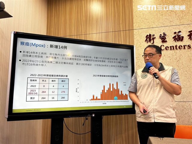 衛福部疾管署今(15)日公布國內新增14例猴痘(MPOX)本土確定病例,均為本國籍男性,