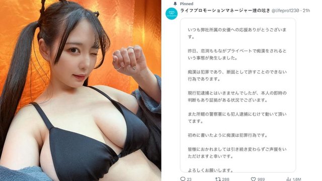 戀渕桃奈遭到色狼侵犯。(圖/翻攝自LIFE PROMOTION、戀渕桃奈推特)