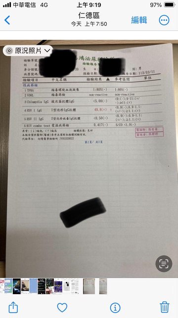 今天不上課,今天是來分享之前提過的性病檢查報告 https://i.imgur.com/Yu0TuEI.jpeg