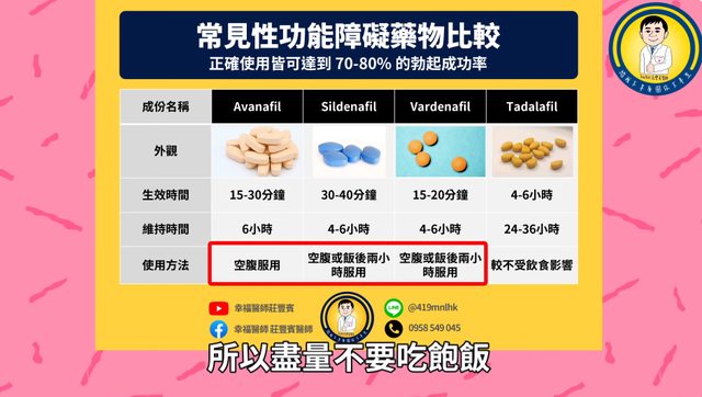 ▼一張圖看懂台灣核可4種壯陽藥物使用方法。(圖/截自《幸福醫師 莊豐賓醫師》