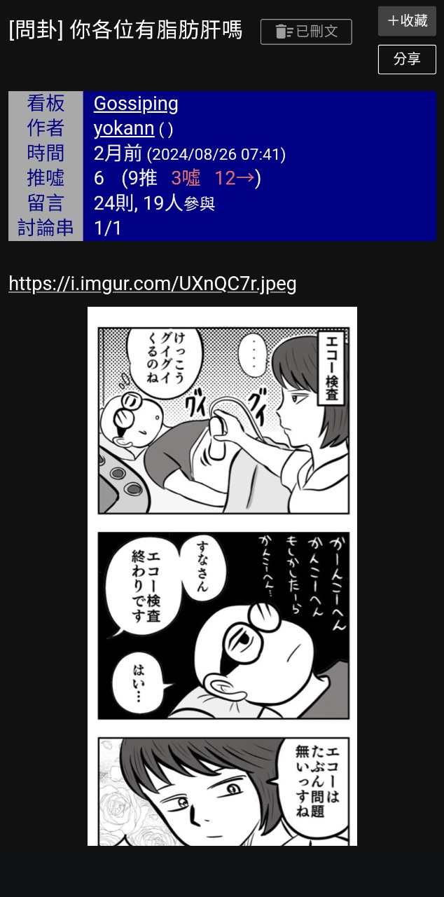 噓 eh07: 親 為什麼脂肪肝那篇刪文了 是準備要複製貼上到下一個板了 10/26 02:46