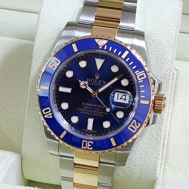 【售】:ROLEX 勞力士 116613LB 18K金+精鋼材質 藍色陶瓷錶圈 放射藍面盤 日期窗 30
