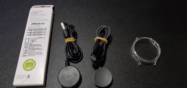 隨附物件:原廠盒裝配件、透明保護殼、額外無線充電線、額外原廠錶帶(藍色)