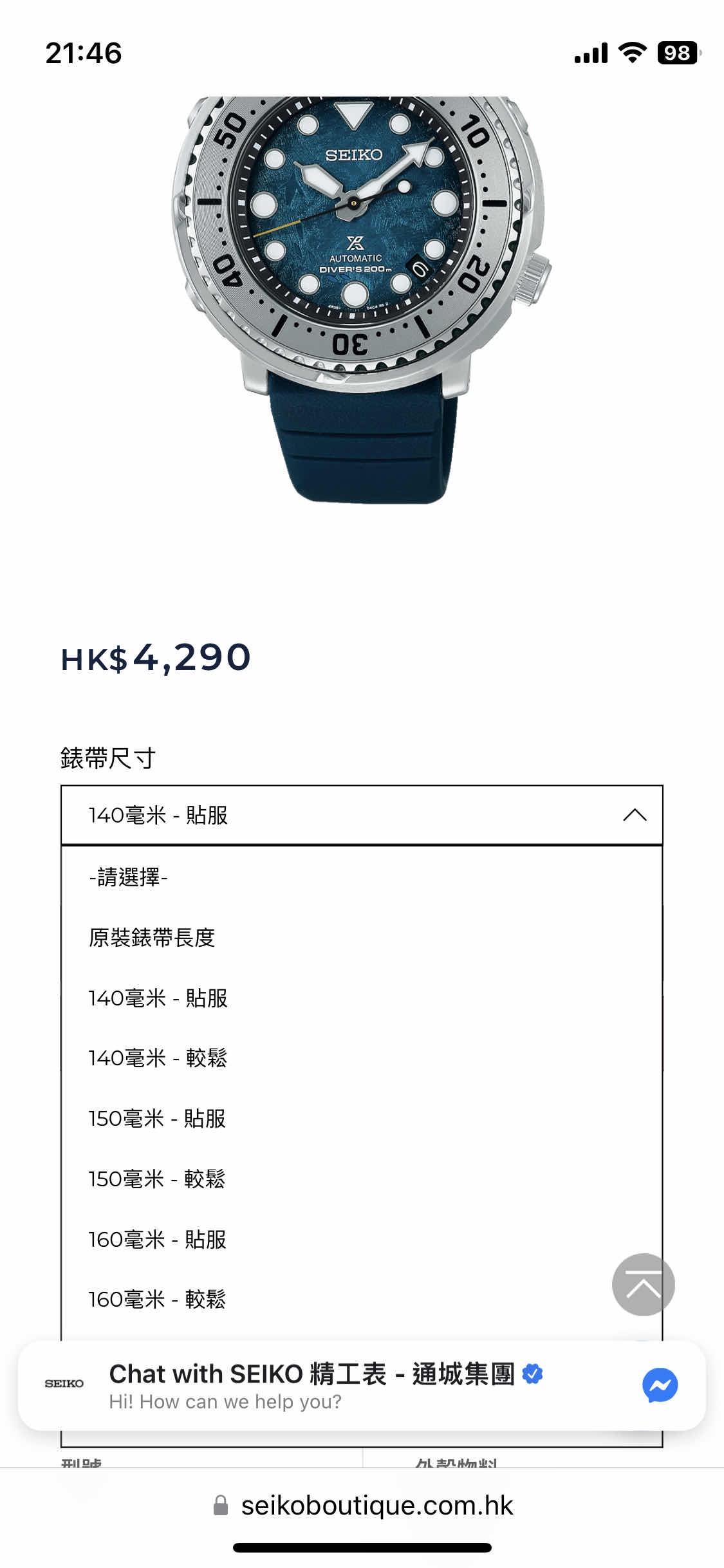 → KasperTW: 題外話 之前發現香港的Seiko可以選錶帶長度… 09/01 22:40