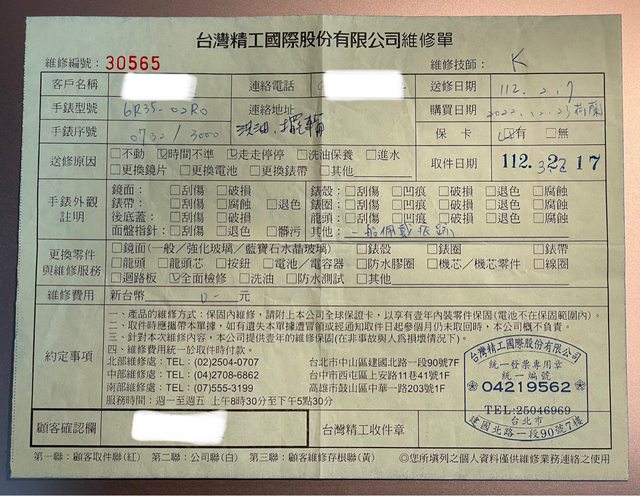 再附上更清楚的送修單
